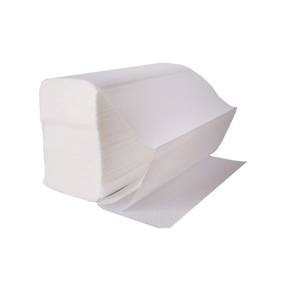 Tidy folded tissue towels, packed 2,400 per box. Designed for efficient dispensing, providing excellent absorbency and durability for everyday use in commercial or hospitality environments.